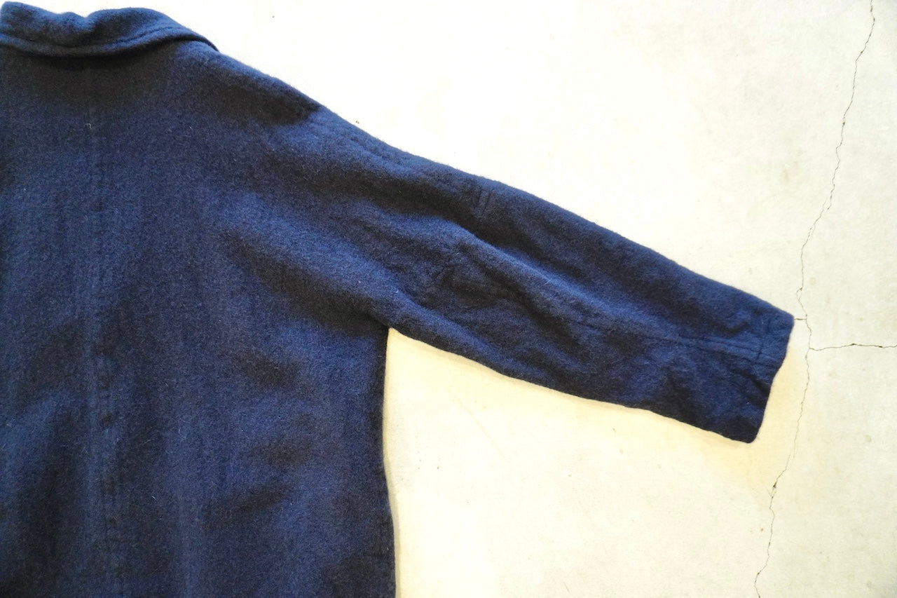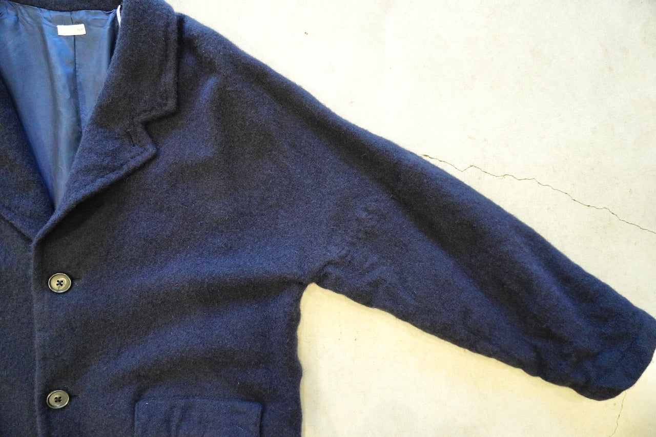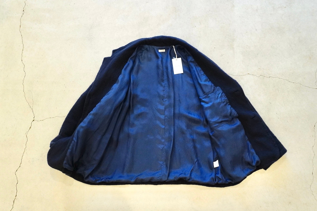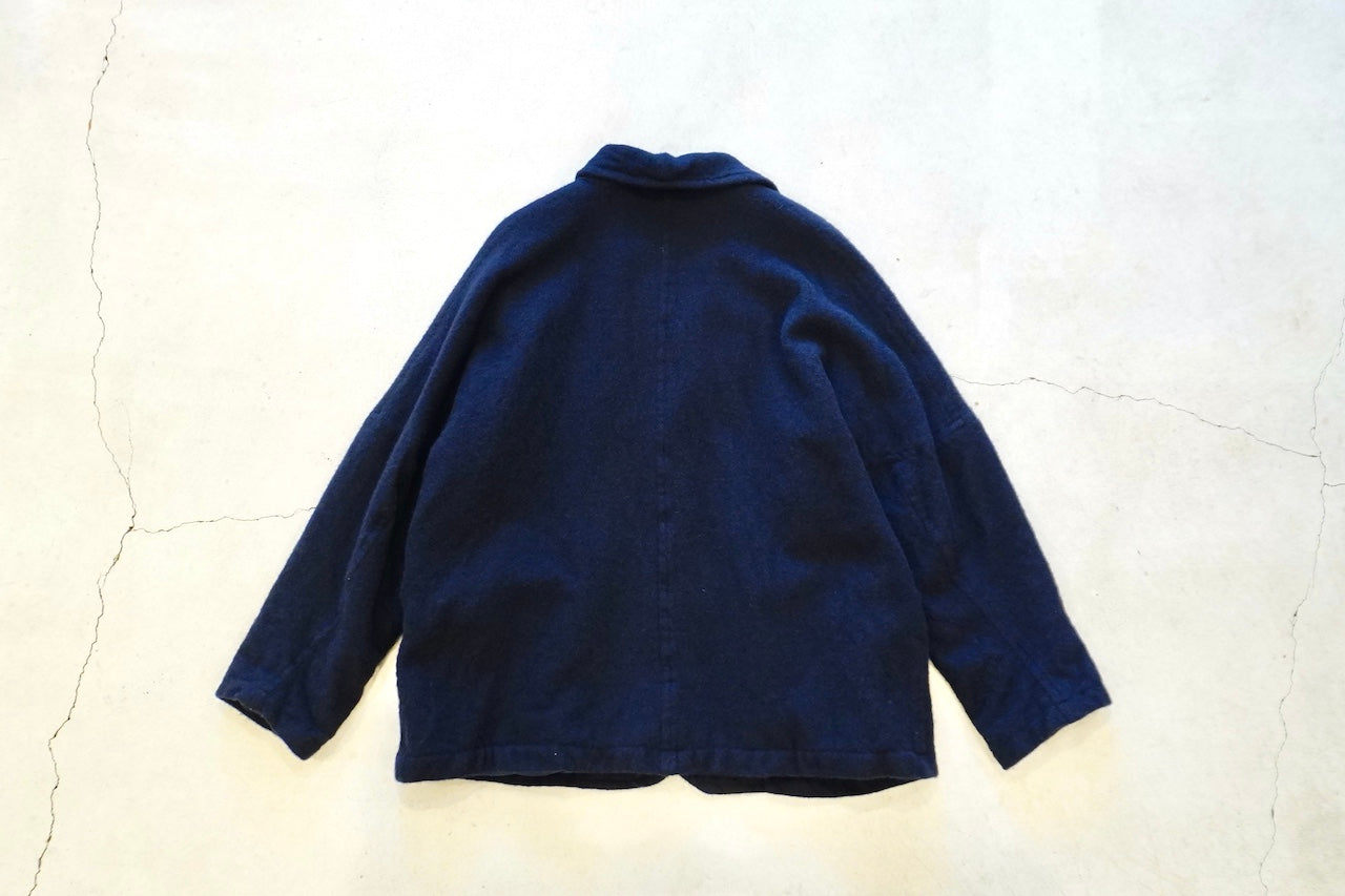 20%の英国羊毛が縮絨することでたくさんの空気を含んだ軽く暖かい生地に仕上がっています。アームの作りなどゆったりしたサイズでリラックス感と上品さがあるジャケットです。