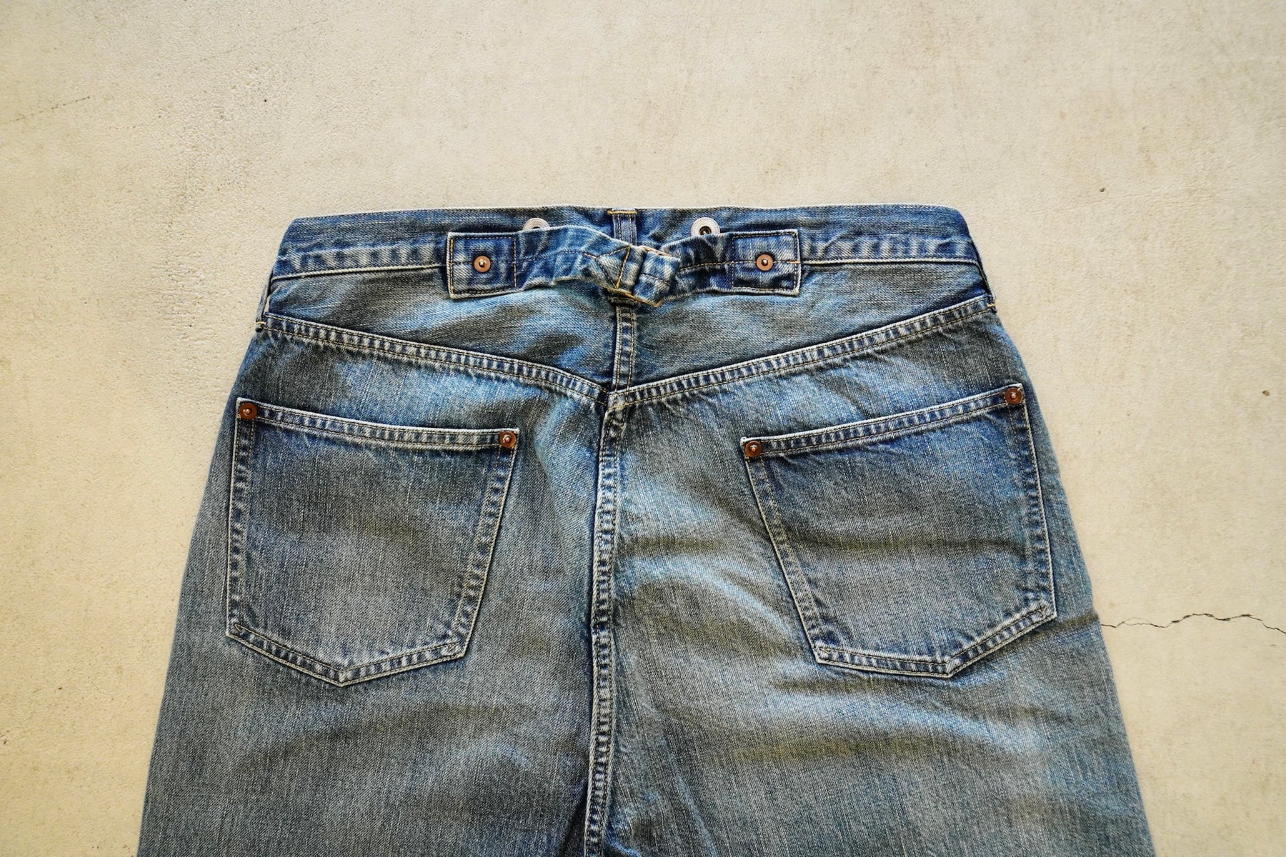 BIGINCHのデニムで稀に見られる、バックポケットが脇側に離れているバランスを活かし、完成されたデザインの中に遊びを入れている